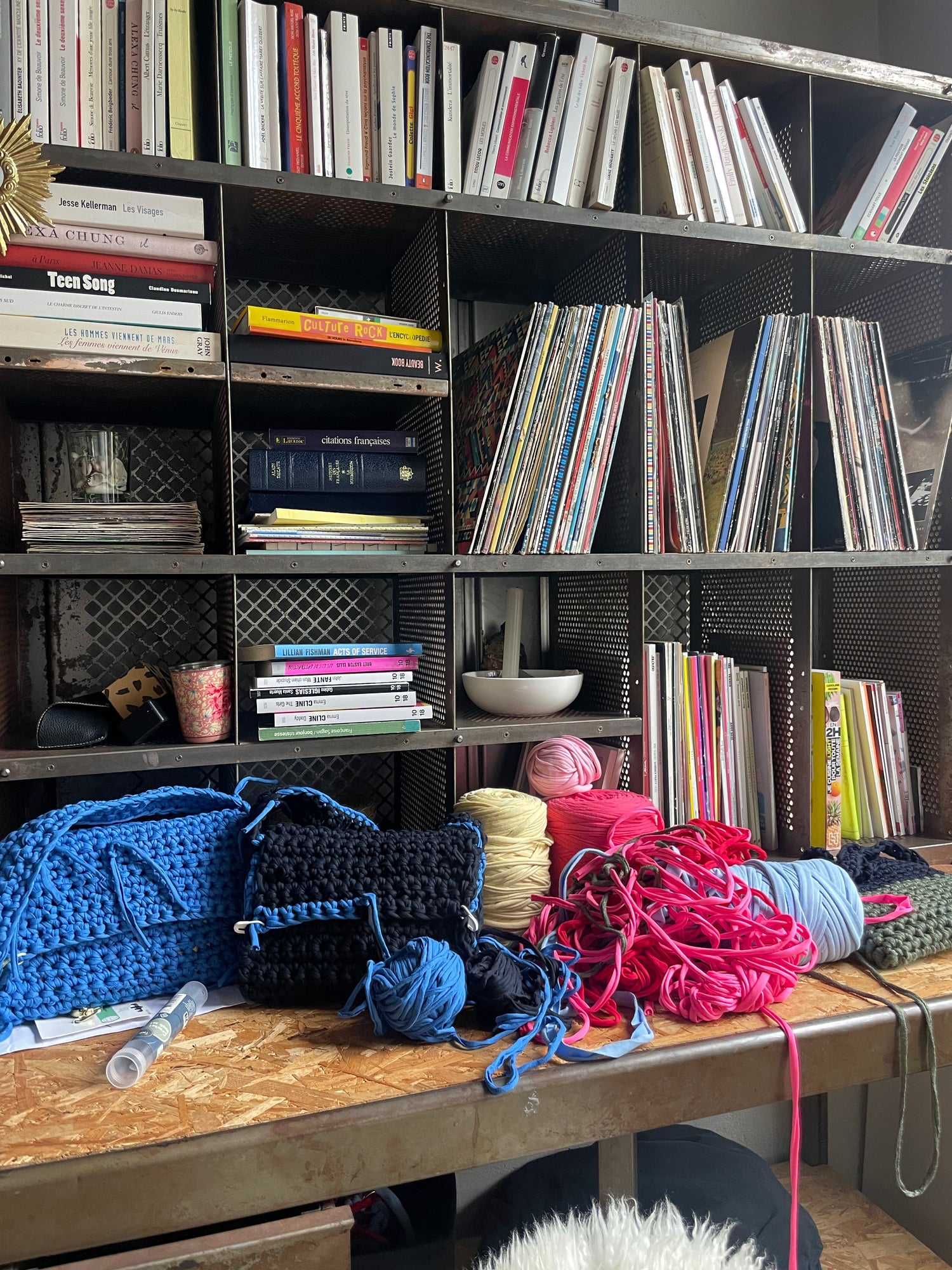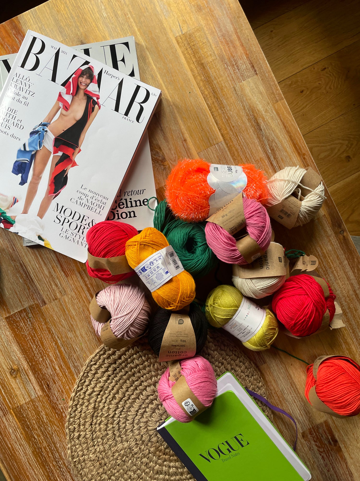 J'utilise des cotons bio, des fils recyclés et des matériaux récupérés pour mes créations.